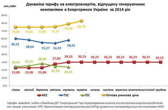 Починаючи з липня 2014 року, промислові споживачі першого та другого класів напруги купуватимуть струм за ціною 93,18 коп та 118,61 коп за кВт-год відповідно. Нацкомісія, що здійснює регулювання у сфері енергетики, днями підвищила роздрібні тарифи для енергопостачальних підприємств на липень на 4,6%.