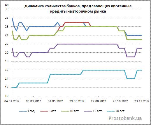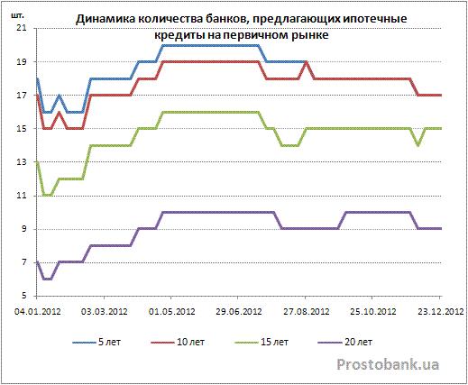 Предложение банковских кредитов на новое жилье также менялось на протяжении 2012 года. По исследованию компании «Простобанк Консалтинг», на один меньше стало банков, выдающих займы сроком на 5-10 лет. А предлагающих долгосрочные 15-20 летние программы – на 4 больше.