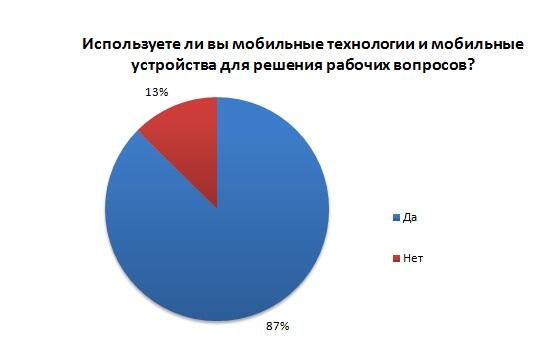 Тем не менее, для решения рабочих вопросов мобильные технологии используют 87% участников опроса.