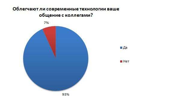 Общение с коллегами становится продуктивнее в 93% случаев всё благодаря тем же инновационным технологиям.