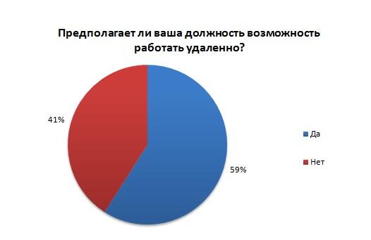 Эра глобализации позволяет работать удаленно за счет столь популярных инновационных технологий. Реализуют эту возможность 59% наших респондентов.