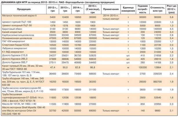 Можно, конечно, предположить, что собственная добыча не привязана к курсу доллара, но это не совсем так. "Укргаздобыча", как и другие добывающие компании, использует импортное оборудование и материалы, доля которых достигает 40% в общем объеме закупок компании ( см. табл. ). Заменить импортную продукцию в такой высокотехнологичной сфере, как добыча природного газа, невозможно. Более того, вся продукция отечественного производства, используемая в процессе добычи углеводородов, также существенно подорожала и продолжает дорожать на фоне девальвации гривни.