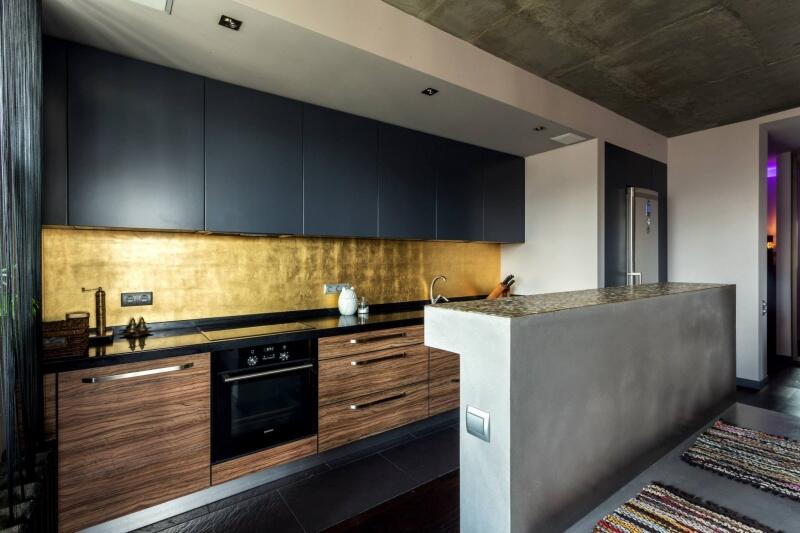 Интерьер этой двухкомнатной квартиры в Киеве общей площадью 76 м2 оформляла сама хозяйка и соавтор проекта дизайнер Ольга Фрадина (для себя и супруга-художника). Как результат, интерьере гармонично переплелись мужская простота и сдержанность с женской страстью к красоте в мелочах, а точнее – любовью к вещам в стиле этно.