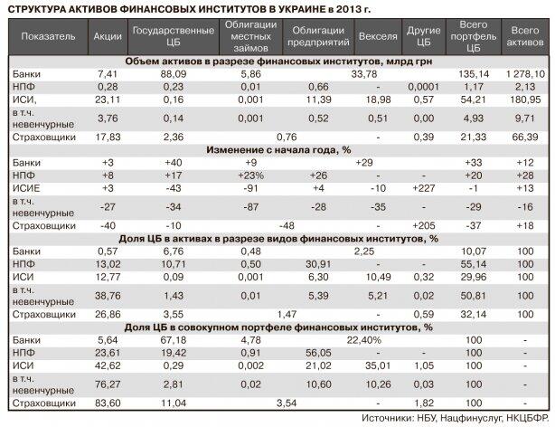 Банки привлекли самые крупные среди других институтов активы (1,3 трлн грн на начало 2014 г.) и являются владельцами крупнейшего инвестиционного портфеля (135 млрд грн, см. табл.). Поэтому именно их инвестиционные вкусы формируют инвестиционный ландшафт национального фондового рынка. На 67% инвестиционный портфель банков состоит из государственных облигаций. И именно этот рынок публичного государственного долга является на сегодняшний день самым развитым — не в последнюю очередь из-за понятности и постоянности функций регулирования (монетарного, бюджетного, налогового) в ходе коммуникаций между единым эмитентом (государством) и значительным кругом инвесторов (банками). Было бы целесообразно распространить этот опыт конструктивного диалога по оси "эмитент—инвестор" и на другие сегменты финансового рынка.