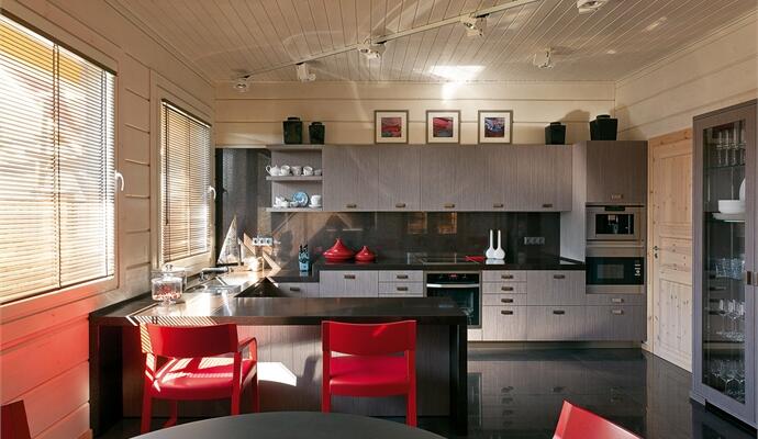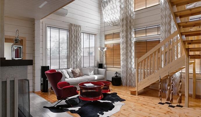 Тонко адаптировав систему ценностей родом из Бельгии к местному контексту, архитектор Ирина Биленчук предложила новый взгляд на загородный интерьер: наивысшая форма роскоши — естественность; хороший дизайн — способ подчеркнуть природную красоту натуральных материалов. Двухэтажный сруб из клееного бруса максимально гармоничен по отношению к окружающей природе. Расположенный в живописной местности под Киевом, дом наполнен солнечным светом и сосновым воздухом. Обилие натурального дерева, сдержанная цветовая гамма, отличный предметный ряд, рациональная планировка — дух и образ скандинавского дизайна послужили отправной точкой для создания очень чувственного, эмоционального интерьера.