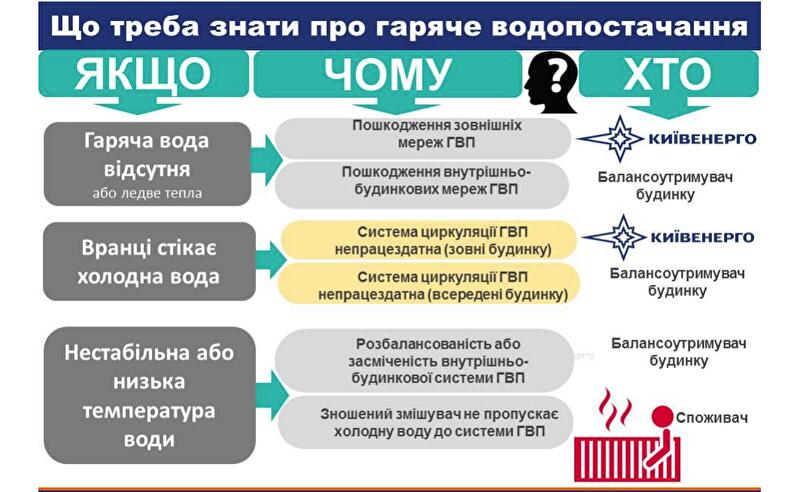 У зв'язку з цим ПАТ «Київенерго» опублікувало роз'яснення з приводу причин відсутності гарячого водопостачання чи надання киянам послуги низької якості.
