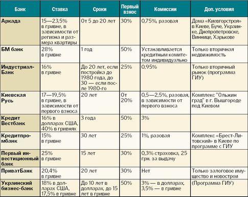 Под какие проценты. Божеские ставки — 15—20% годовых в гривне — у банков, сотрудничающих с Государственным ипотечным учреждением (ГИУ) и финансирующих новостройки. Остальные подняли ставки с 23% до 25—28%. Есть даже те, которые одалживают деньги под 40% годовых в гривне. В некоторых банках действует несколько ставок. «Киевская Русь» кредитует под 17—19,5%: чем больше ваш взнос, тем ниже ставка.