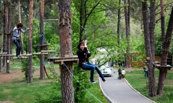Вас ждут около 70 аттракционов, общая протяженность которых до 1 км. Здесь вы сможете взобраться по веревочной лестнице (высота до 12 метров), пройти по канату над бездной или ощутить свист ветра в ушах, летя по тросу со скоростью почти 30 км/час. Детям не будет скучно на Baby-тропах (высота 0,5 м от земли). Рассчитывайте на то, что для одного прохождения (три тропы) уйдет примерно час-полтора. Для детей до 16 лет (рост 115–140 см) это будет стоить 80 грн (в выходные и праздничные дни), а взрослому придется заплатить 140 грн. В парке вам будет не до еды, а бывалые еще и советуют до посещения парка не наедаться сильно. Смотрите на погоду, так как парк в дождь не работает. Надевайте сразу удобную спортивную одежду — раздевалок здесь нет.
