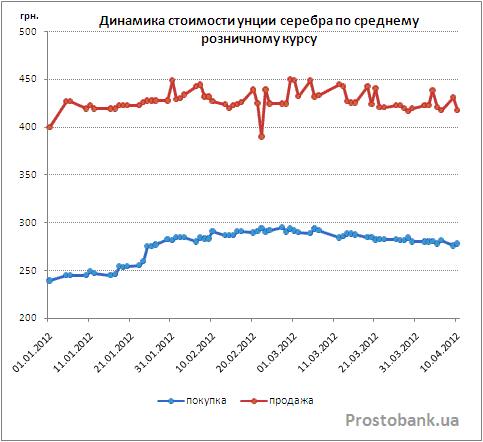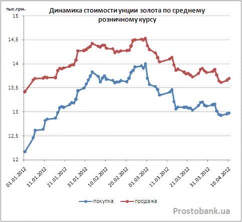 Теоретически, инвестор, выбравший в начале 2012 года слитки или инвестиционные монеты из банковских металлов, к началу апреля-2012 должен был приумножить свой капитал. В частности, унция золота за почти три с половиной месяца подорожала по официальному курсу НБУ на 671 гривну или на 5,5%, что эквивалентно примерно 19,8% годовых.