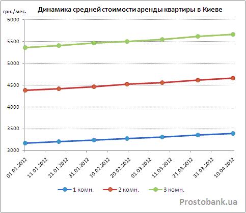 Однако помимо подорожания квадратных метров, недвижимость может приносить своему владельцу прибыль и в виде арендной платы. В Киеве в среднем по рынку стоимость аренды жилья выросла с начала 2012 года на 5,6%-6,8% и составила 3,4-5,7 тысяч гривен в месяц, в зависимости от размера квартиры.