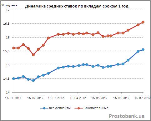 По сравнению с началом 2012 года средние ставки по вкладам с пополнением выросли на 0,8-1,8 процентного пункта в зависимости от срока, при этом с начала тенденции или с середины февраля-2012 рост составил 1-2,2 процентного пункта или на 7%-17% от предыдущего значения. При этом больше всего «подорожали» краткосрочные (трехмесячные) депозиты, а самые высокие в среднем по рынку ставки предлагают по вкладам на год.