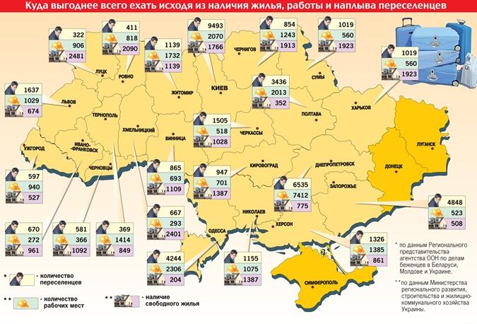 Однако, по ее словам, переселенцы не особо рады таким предложениям. Дальше чем за 150 километров от Киева они ехать не рвутся и крутят носом, когда узнают, что туалет находится не в доме, а во дворе. А так по области, по официальным данным, можно поселить свыше 1700 человек.