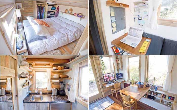 Маленький домик Мейси Миллера Мейси, архитектор из Айдахо, продала свой дом площадью 800 квадратных метров и построила домик площадью 60. Основанием послужила платформа старого трейлера, который обошелся в 11 500 долларов. Все в домике компактно, эргономично и уютно. Многие вещи внутри сделаны из использованных ранее материалов, например, сайдинг и газовая плита.