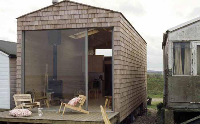 Пляжное шале Studiomama Маленький пляжный домик состоит из двух спален, столовой, гостиной, кухни и ванной комнаты. В основе жилья, созданного лондонским дизайнером Ниной Толстрап, гальванические стальные стойки. Большое окно домика выходит на океан.