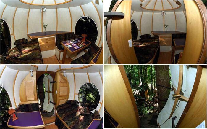 Сферический домик на дереве Free Spirit Sphere Удивительный круглый домик на дереве на западном побережье острова Ванкувер, Канада. Как утверждают владельцы, он поможет раскрыться каждому, кто решит здесь пожить. Каждое из строений характеризуется уникальным дизайном и состоит из спальни, кухни и гостиной. Владельцы планируют построить сферические сооружения для принятия душа, стирки, чтобы дополнить комплекс. Аренда домика на двоих обойдется в 180 долларов.