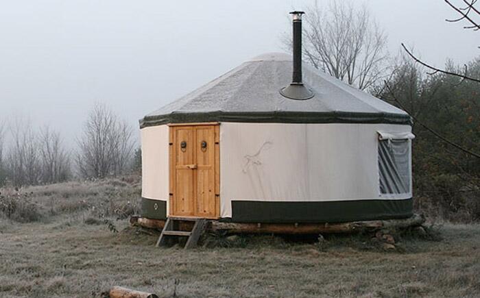 Юрты Зачем изобретать велосипед? Тоже самое пришло в голову Марсин и Аниссы Падлевских, которые представили в Онтарио разработанную ими юрту. На протяжении десяти лет команда дизайнеров создала несколько десятков портативных, легких юрт, в которых абсолютно комфортно можно жить. Стандартная юрта диаметром 5,2 метра оснащена тремя большими окнами и автономным куполом, который можно устанавливать вручную за 2 часа. Стартовая цена – 6 636 долларов.