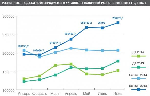 Промышленный сектор за семь месяцев 2014 г. снизил закупки бензина на 14,5%, дизтоплива — на 5,3%. Продолжение, как говорится, следует.