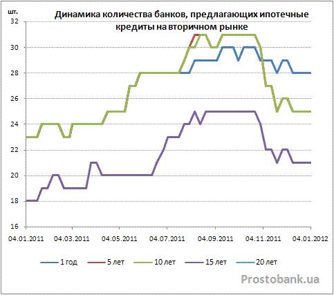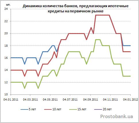Но самой неприятной новостью года стало неожиданное уменьшение количества банков, принимающих заявки по кредитам. Так, если в конце октября-2011, по данным компании «Простобанк Консалтинг», на рынке было 15 предложений по кредитам на покупку вторички сроком на 20 лет, то в конце декабря-2011 их осталось 12. Количество таких займов сроком на 15 лет уменьшилось с 25 до 21. Ту же тенденцию демонстрируют кредиты на покупку первички, которые вообще уменьшились в количестве на треть: так, количество предложений займов сроком на 15 лет за тот же срок уменьшилось с 19 до 13.