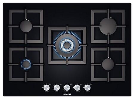 Газовая варочная панель Siemens, четыре обычных конфорки разной мощности и конфорка-WOK