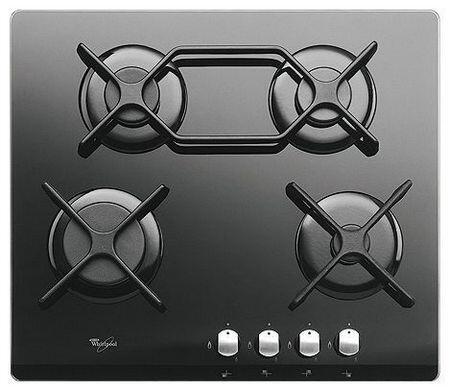 Варочная панель Whirlpool, газ на стекле. Поверхность из закаленного стекла несложно очистить от загрязнений, хотя она требует более аккуратного обращения. Удлиненная чугунная решетка предназначена для посуды овальной формы (гусятницы и т.п.)
