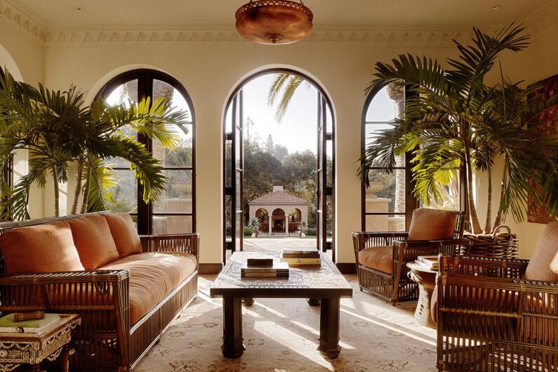 Нередко в средиземноморских домах окна занимают большую площадь одной из стен, выводя гостей в сад или на террасу.