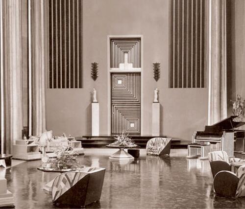 В 20-30хх годах стиле арт-деко оформлялись фешенебельные лайнеры и отели, самые шикарные рестораны и кафе, кабинеты могущественных магнатов и апартаменты кинозвезд.