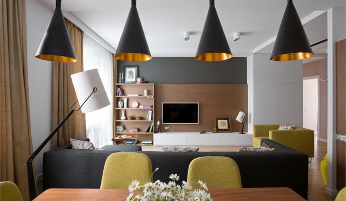 Отдельное внимание уделено освещению: несколько акцентных дизайнерских светильников (особая любовь заказчицы) и дополнительная подсветка, которая имеет различные сценарии, создают правильную атмосферу.