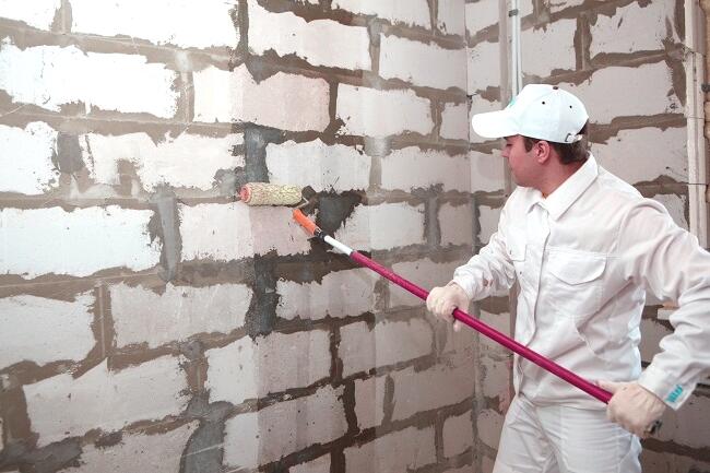 Грунтовка стен выполняется именно тем грунтом, который подходит для определенной поверхности:
