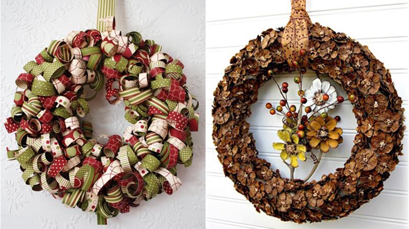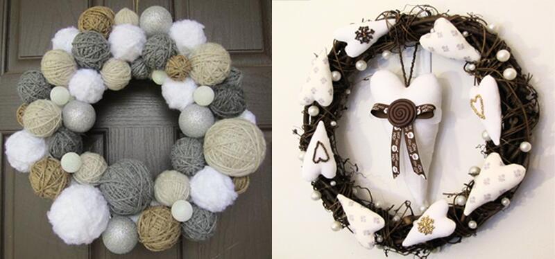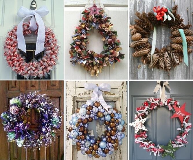 Этот вариант праздничных украшений подходит не только владельцам частных домов, но и жителям обычных квартир в многоэтажках: если вы не можете украсить фасад дома, то сделать декор для входной двери – можете вполне!