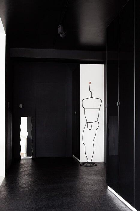 Благодаря чёрному цвету удалось скрыть истинные размеры шкафа-купе