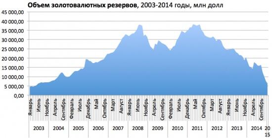 Хотя думать нужно было раньше - резервы уже давно растаяли. По статистике Нацбанка, в январе 2015 года их объем составил 6,4 млрд долл. В последний раз меньше было 12 лет назад, в июне 2003 года, когда золотовалютные запасы государства составляли немногим больше 6,2 млрд долл.