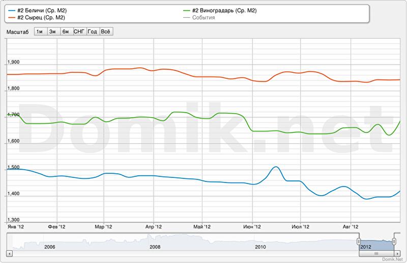 Зеленая кривая – квартиры в новых домах на жилом массиве Виноградарь
