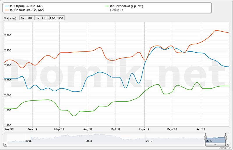 Синяя кривая - квартиры в новых домах на жилом массиве Отрадный