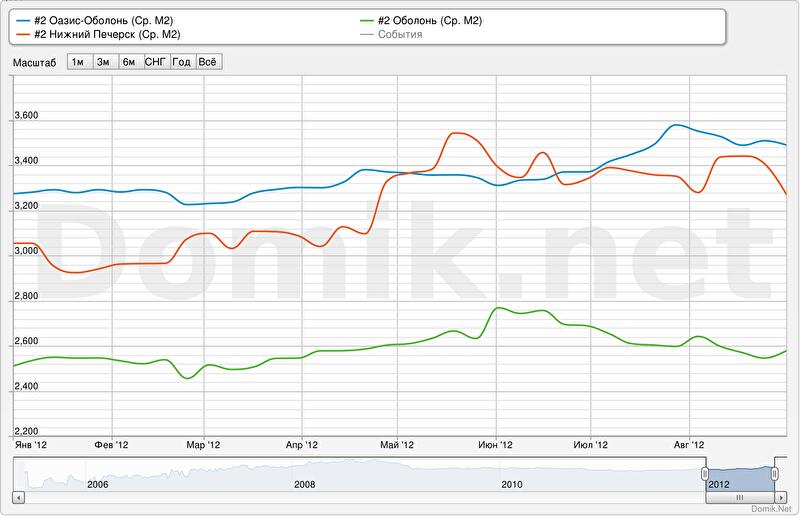 Зеленая кривая – квартиры в новых домах на жилом массиве Оболонь