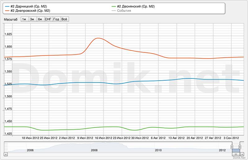 Зеленая кривая – статистика цен предложений в Деснянском районе