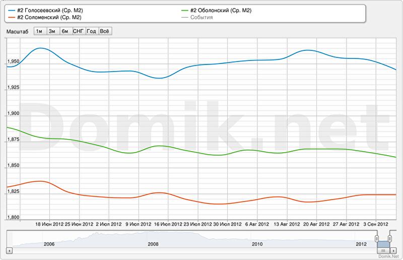 Зеленая кривая – статистика цен предложений в Оболонском районе
