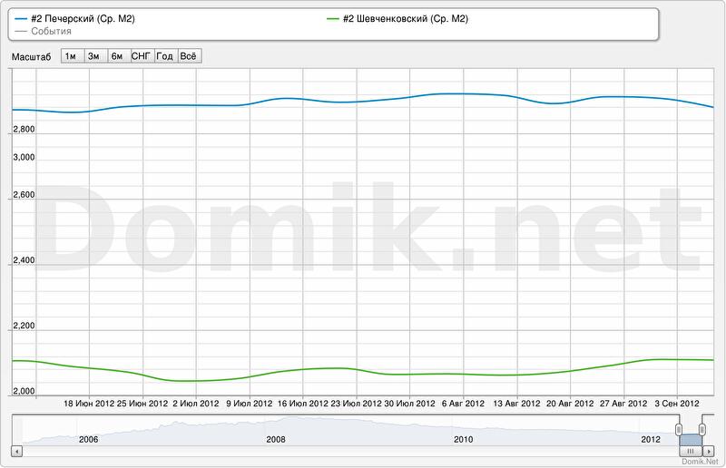 Зеленая кривая – статистика цен предложений в Шевченковском районе