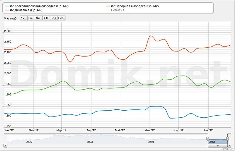 График №3. Изменение статистики цен предложений в новостройках на массивах Александровская Слободка, Саперная Слободка, Демеевка