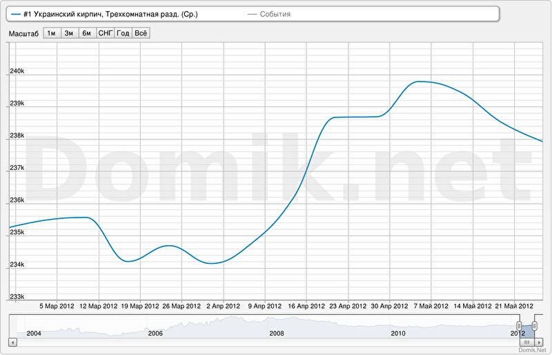 За последнюю неделю статистика цен предложений на трехкомнатные квартиры в сегменте «украинский кирпич» снизилась на 0,2%.