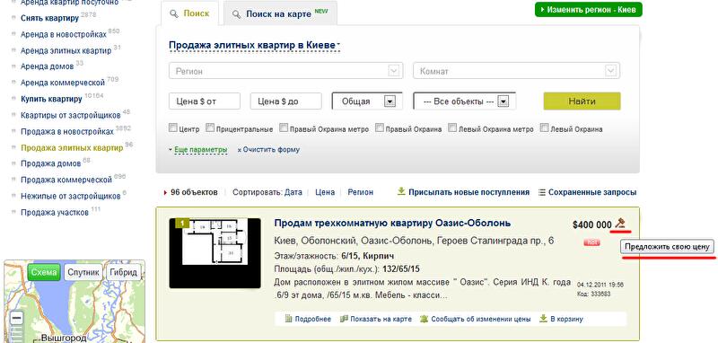 Один из них позволяет покупателям при просмотре базы данных предлагать владельцам свою цену за конкретные объекты недвижимости.