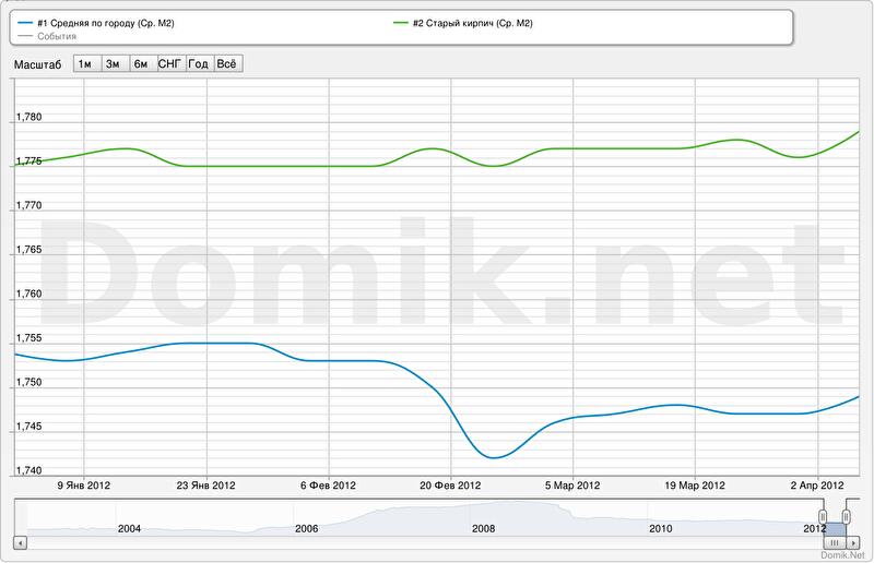 Зеленая кривая – статистика цен предложений в сегменте «старый кирпич»