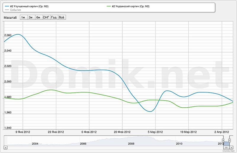 Зеленая кривая – статистика цен предложений в сегменте «украинский кирпич»