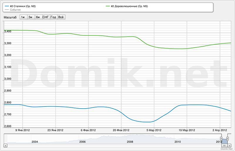 Зеленая кривая – статистика цен предложений в сегменте «дореволюционные дома»