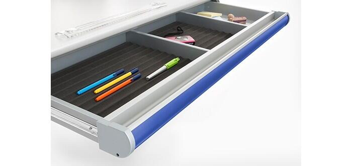 Когда ребенок занимается, у него должны быть под рукой карандаши и ручки, поэтому стол следует оборудовать выдвижными секциями для хранения - ящиками или подвесными тумбами. Чтобы каждая вещь лежала на своем месте, и не возникало ощущения хаоса, ящики для столов moll снабжены разделителями и контейнерами.