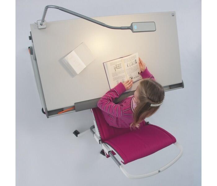 При выборе настольной лампы обратите внимание на то, какой свет она излучает. На рабочей поверхности не должно быть ярких бликов и контрастных теней, которые создают дополнительную нагрузку на глаза. Свет должен быть мягким, рассеянным и в то же время хорошо освещать стол. Такими свойствами обладают лампы Moll , разработанные специально для детских глаз. Например, лампа Mobilight имеет специальное светоотражающее покрытие, которое рассеивает свет, а популярная светодиодная лампа Flexlight обладает функцией регулировки интенсивности освещения. Эти лампы также можно адаптировать для правшей и левшей, поскольку, если ребенок пишет правой рукой, свет должен падать слева, а если левой – справа. Конструкция лампы позволяет прочно закрепить ее на наклонной столешнице, а также легко регулировать.