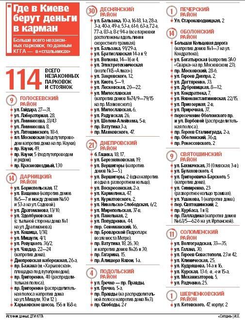 Инфографика парковок в Киеве, которые пойдут под снос