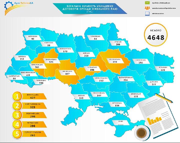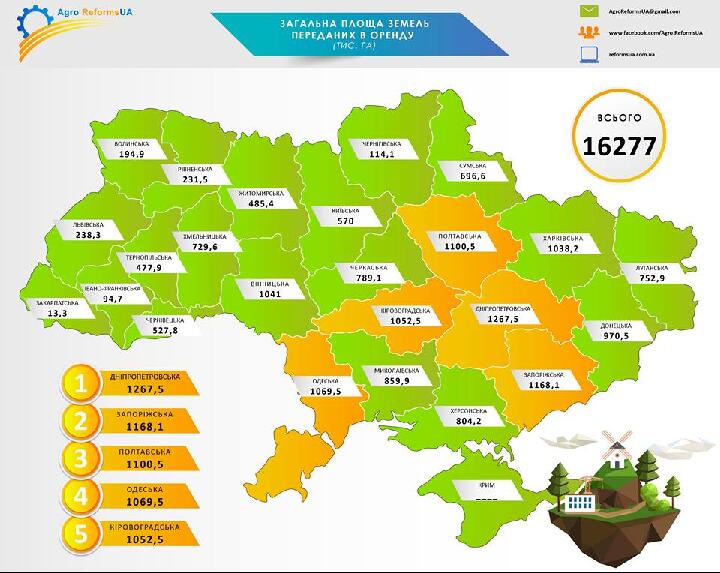 Domik.ua дізнався про загальну кількість укладених орендних договорів земельного паю, середній розмір орендної плати за один гектар землі та загальну площу земель, наданих в оренду.