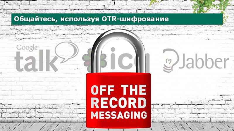 OTR позволяет зашифровать переписку в таких популярных клиентах, как Google Talk, Jabber и ICQ. К сожалению, Skype не поддерживает плагин шифрования переписки, при том он допускают одновременный логин с нескольких устройств, включая мобильные. Помимо этого, чтобы переписка случайно не попалась на глаза посторонним, не забывайте разлогиниваться.