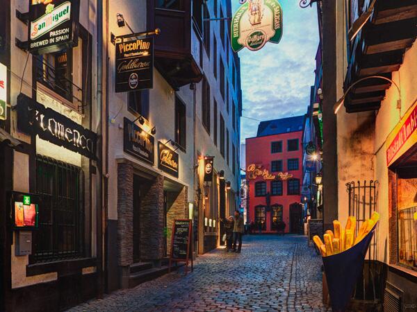 Старый город представляет собой путаницу узких, мощеных булыжником улочек и аллей рядом с центром города. Эта часть Кёльна значительно пострадала от бомбежек Второй мировой войны, и многие исторические здания были уничтожены. Большинство домов, которые были построены после войны, отличались плохим качеством и не пользовались большим спросом среди покупателей.