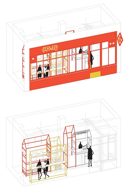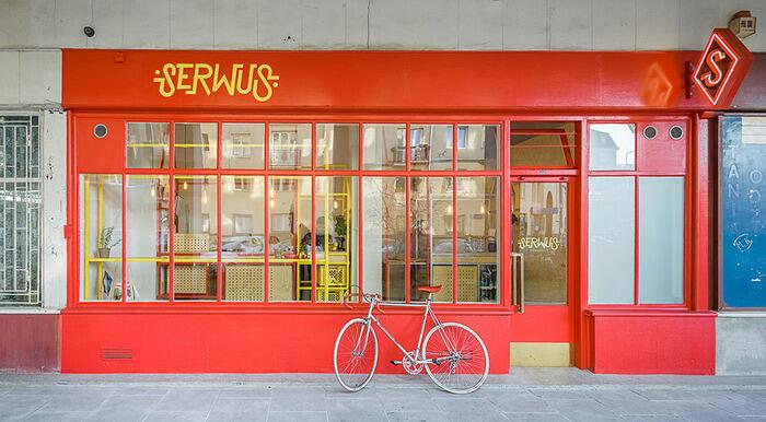 Польская архитектурная фирма MFRMGR (бывшие Moko Architects) разработала интерьер и фасад бара Serwus в Варшаве, Польша.